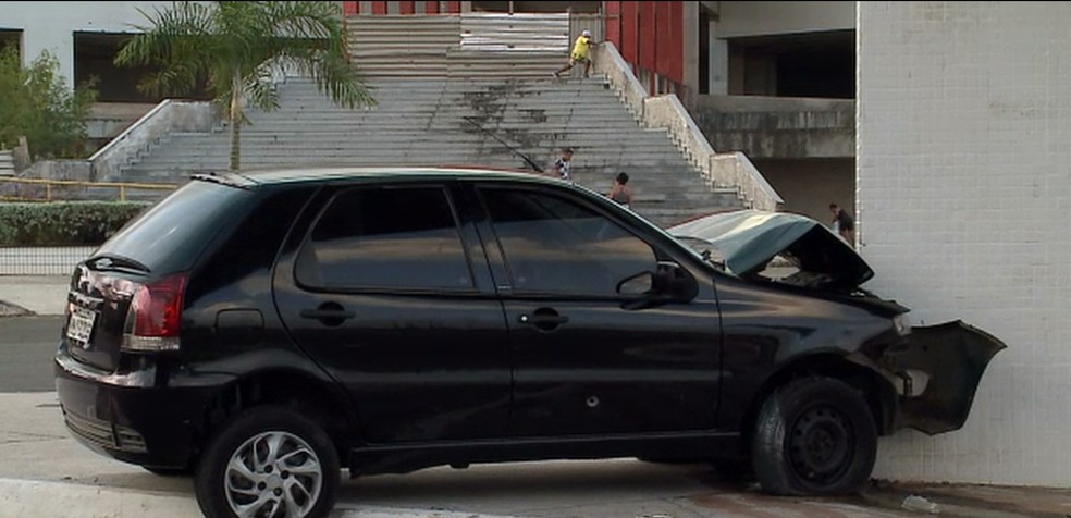 Quando estavam se aproximando do portão principal, os criminosos perderam a direção do veículo e bateram o carro na guarita que fica na entrada da UFMA.