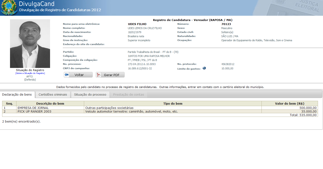 O jornalista Udes Lemos da Cruz Filho, agora candidato a Vereador pelo Municipio de Raposa, escolheu a Cidade como bandeira de luta para defender pelos quatro cantos do Estado, recentemente teve candidatura deferida pela Justiça Eleitoral.