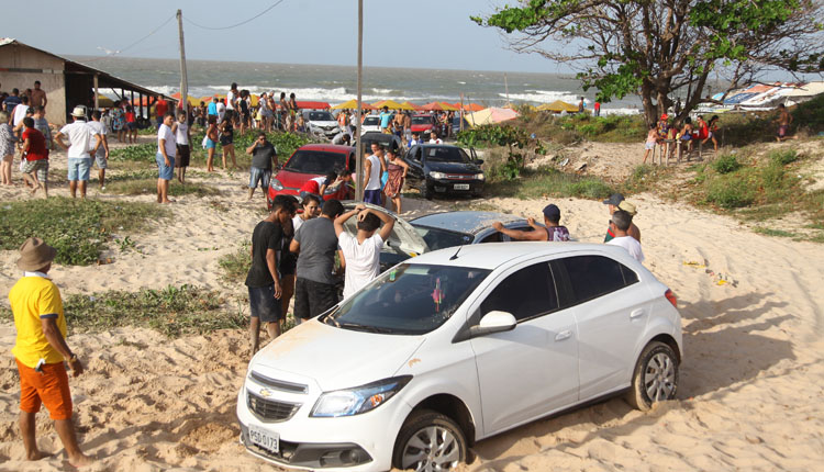 Centenas de veículos ficaram atolados na areia, ontem (1º), na Praia do Araçagi, em São José de Ribamar. O transtorno foi causado, como em quase todos os anos, em razão da alta da maré, que ocorreu por volta das 16h.