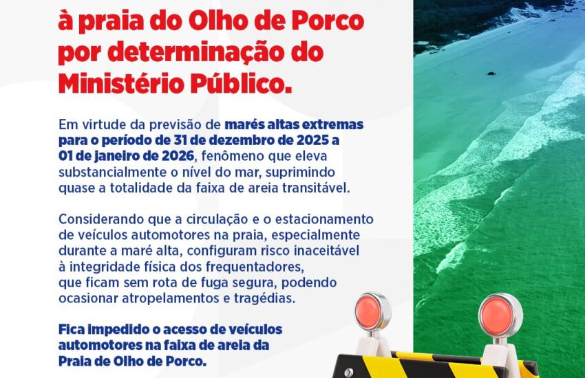 Em uma ação para ordenar o trânsito e garantir a segurança durante as celebrações de fim de ano, a Prefeitura Municipal de São José de Ribamar publicou, nesta segunda-feira (29), um decreto com regras específicas para o acesso de veículos à faixa de areia da Praia do Araçagi nos dias 31 de dezembro e 1º de janeiro.