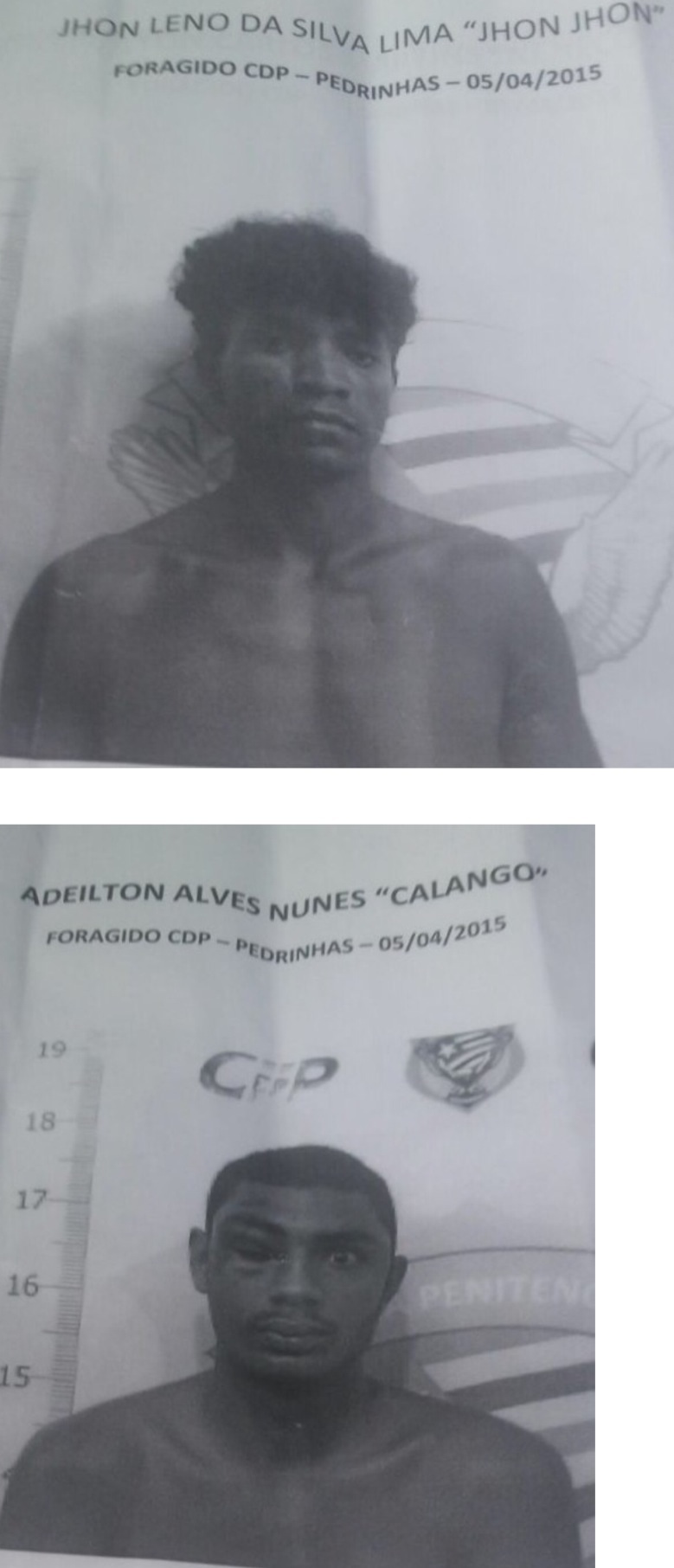 As imagens abaixo é de Adeilton Alves Nunes, Ilton Carlos Martins, John Lennon da Silva Lima e John Carlos Campos, detentos que foram resgatados na madrugada deste domingo (05), do Complexo Penitenciário de Pedrinha.
