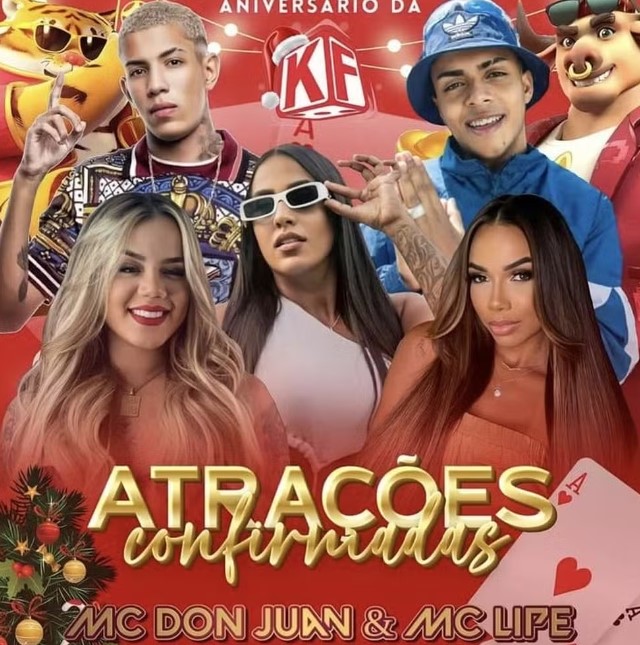 Em uma conta reserva usada por Skarlete no Instagram estão duas postagens referentes ao ‘Aniversário da KF’, com atrações musicais. Em uma das postagens aparecem um touro e um tigre, que costumam aparecer nos jogos de azar relacionados ao ‘Fortune Tiger’.