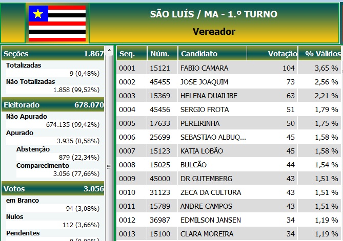 Veja os 13 vereadores mais votados 07/10/201207/10/2012 | PÁGINA PRINCIPAL, Notícias Navegação de Post Edivaldo Holanda Júnior lidera em São Luís; vejaProfessor Josemar lidera em Paço do Lumiar; acompanhe aqui