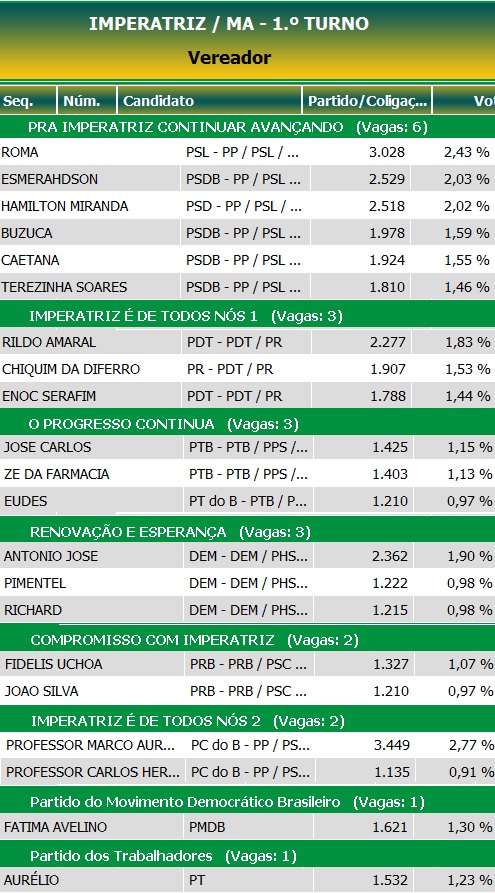 Veja os 21 vereadores eleitos em Imperatriz 07/10/201207/10/2012 | PÁGINA PRINCIPAL, Notícias Navegação de Post Tina Monteles se reelege em AnapurusIracema vence com folga em Urbano Santos; veja os números