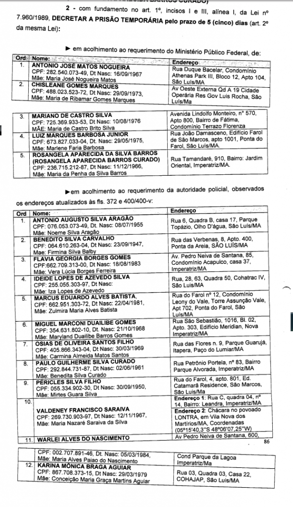 O Blog do Neto Ferreira teve acesso, com exclusividade, à decisão judicial que decretou a prisão temporária do assessor técnico da Secretaria de Saúde, médico Mariano de Castro Silva, e mais 16 pessoas ligadas ao esquema da Saúde no governo Flávio Dino.