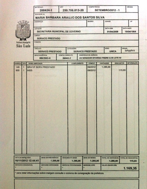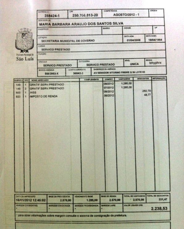 É o que comprovam cópias dos contracheques dela a que o blog teve acesso na manhã de ontem (28).