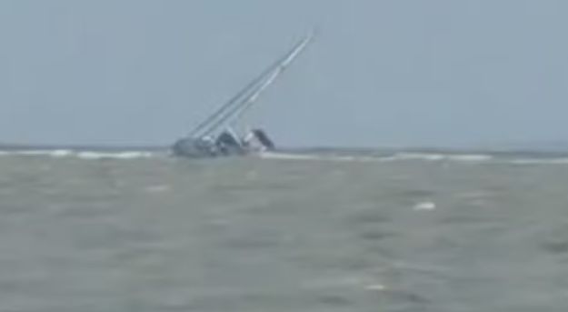 Os ventos levaram a embarcação até um banco de areia, onde ficou encalhado. No veleiro estavam um brasileiro e um sul-africano, que abandonaram a embarcação e buscaram ajuda.