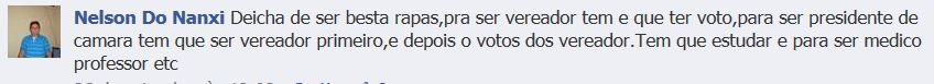 Aliado político de Cleomar Tema – prefeito preso na Operação Rapina da Polícia Federal – o presidente da Câmara dos Vereadores de Tuntum, Nelson do Nanxi, que ganhou destaque neste blog após atropelar a língua portuguesa (reveja), voltou a aprontar em sua página de relacionamento.