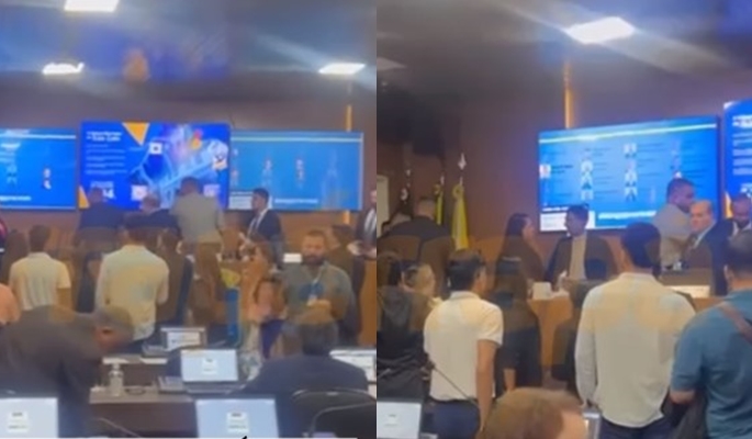 Vídeo publicado pelo Portal Marrapá mostra uma grande movimentação no plenário da Casa causada pela briga.