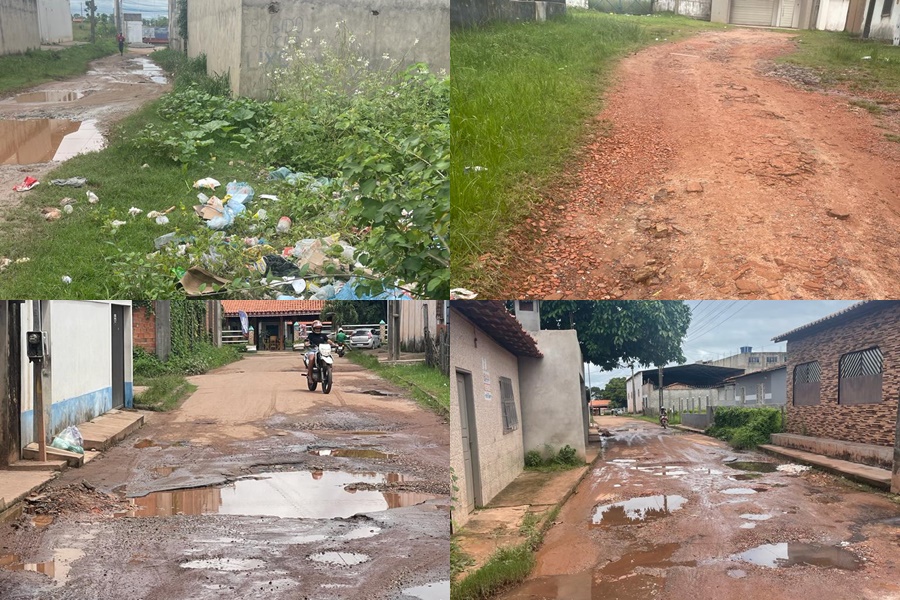 Imagens enviadas ao Blog do Neto Ferreira mostram o retrato fiel do caos que se instalou na infraestrutura da cidade. Há buracos, lama e muito lixo a céu aberto nas ruas.