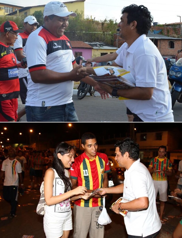Durante toda a sua campanha, o candidato a deputado estadual, Wellington do Curso (PPS) vem realizando o trabalho de panfletagem e “corpo a corpo” em torno do estádio Castelão.