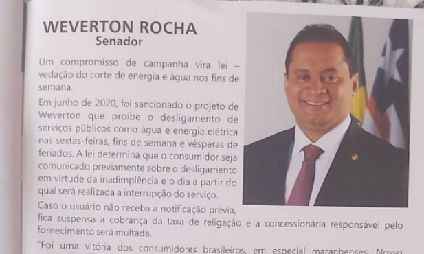 O “release” publicado no material eclesiástico propagandeia um projeto de lei do parlamentar, que veda o corte de energia elétrica e água nos fins de semana, e o seu empenho para conseguir o “menor reajuste possível nas contas de luz em 2021”. O ex-ministro Milton Ribeiro também ganhou um encarte dedicado a ele impresso na contracapa de Bíblias da instituição, conforme revelou o jornal “O Estado de S. Paulo”. Procurados, Gilmar Santos e Arilton Moura não se pronunciaram.