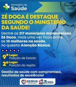 O município de Zé Doca, segundo avaliação do Ministério da Saúde ficou mais uma vez entre as 10 melhores do estado do Maranhão no quesito atenção básica.