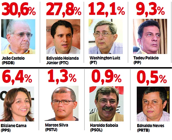 Segundo os dados da Escutec, Zé Gomes aparece com 57,5% das intenções de voto, em seguida vem Carlos do José Mansueto (PT) com 30,4%, Antônio Homete, o Didi (PSOL) com 2,1%, e NS/NR 9,0%, na estimulada.