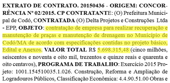 Só que não. Provavelmente só uns bancos serão concertados, o piso restaurado e algumas mudas de plantas darão charme ao local. O município de Codó deve estar muito bem para pagar R$ 5.698.315,48 a empresa Delta Projetos e Construções Ltda, para realizar o serviço. O valor ainda inclui a manutenção de drenagem, mas nem por isso justifica o montante.